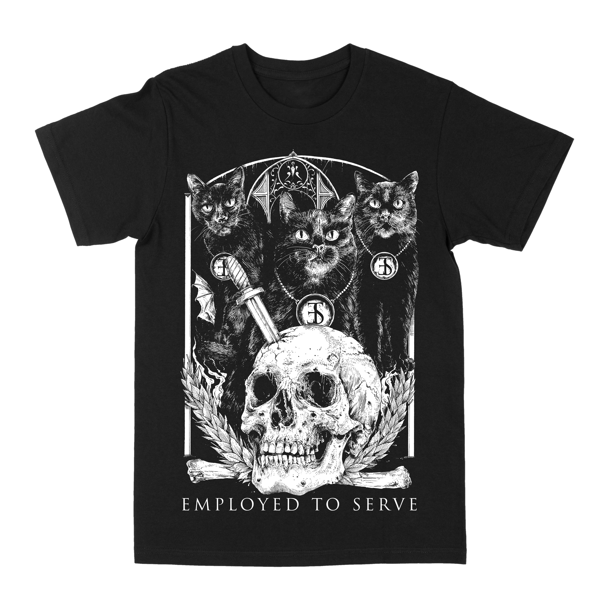 EMPLOYED TO SERVE "Cats" Black T-Shirt